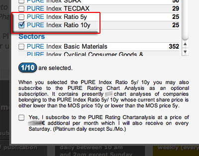 Please reckon: Chose the PURE Index Ratio 5Y or 10Y to order your charts by TA4YOU.